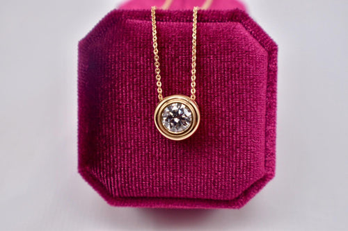 Vintage Mid Century 14K Yellow Gold Solitaire 1.50cts Natural Diamond Bezel Slide Necklace