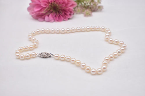 Vintage 14K White Gold 14.5 Inch Fresh Water White Pearl Choker Necklace Strand