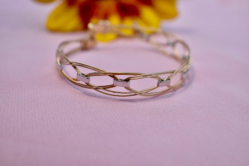 Vintage 14K Two Toned Yellow & White Gold Unique Flexible Criss Cross Bracelet