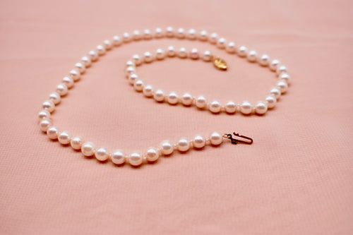 Vintage 14K Yellow Gold 17 Inch Fresh Water White Pink Hue Pearl Necklace Strand