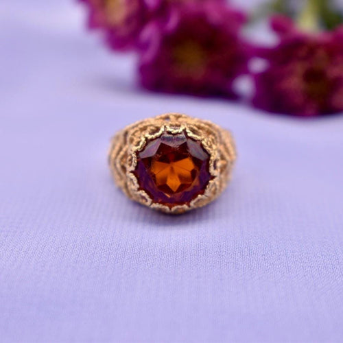 Vintage Mid Century 18K Yellow Gold Paste Citrine Ring