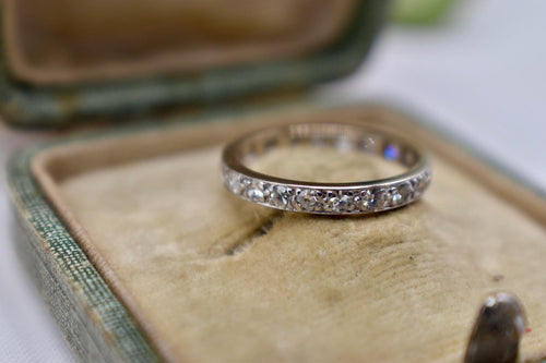 Vintage Art Deco Platinum Eternity Diamond Floral Wedding Band