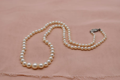 Vintage Sterling Silver 20" Graduated Pearl Strand Necklace