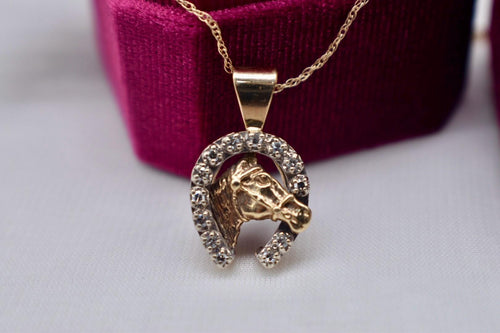 14K Yellow & White Gold Vintage Horse Shoe Single Cut Diamond Necklace