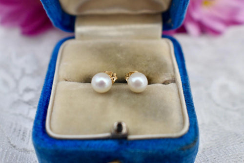14K Yellow Gold White Pearl Stud Pushback Earrings