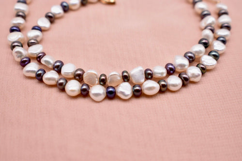 14K Yellow Gold Vintage White & Grey Pearl Necklace Strand