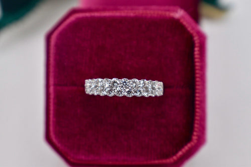 Vintage 14K White Gold Double Row Diamond Wedding Band