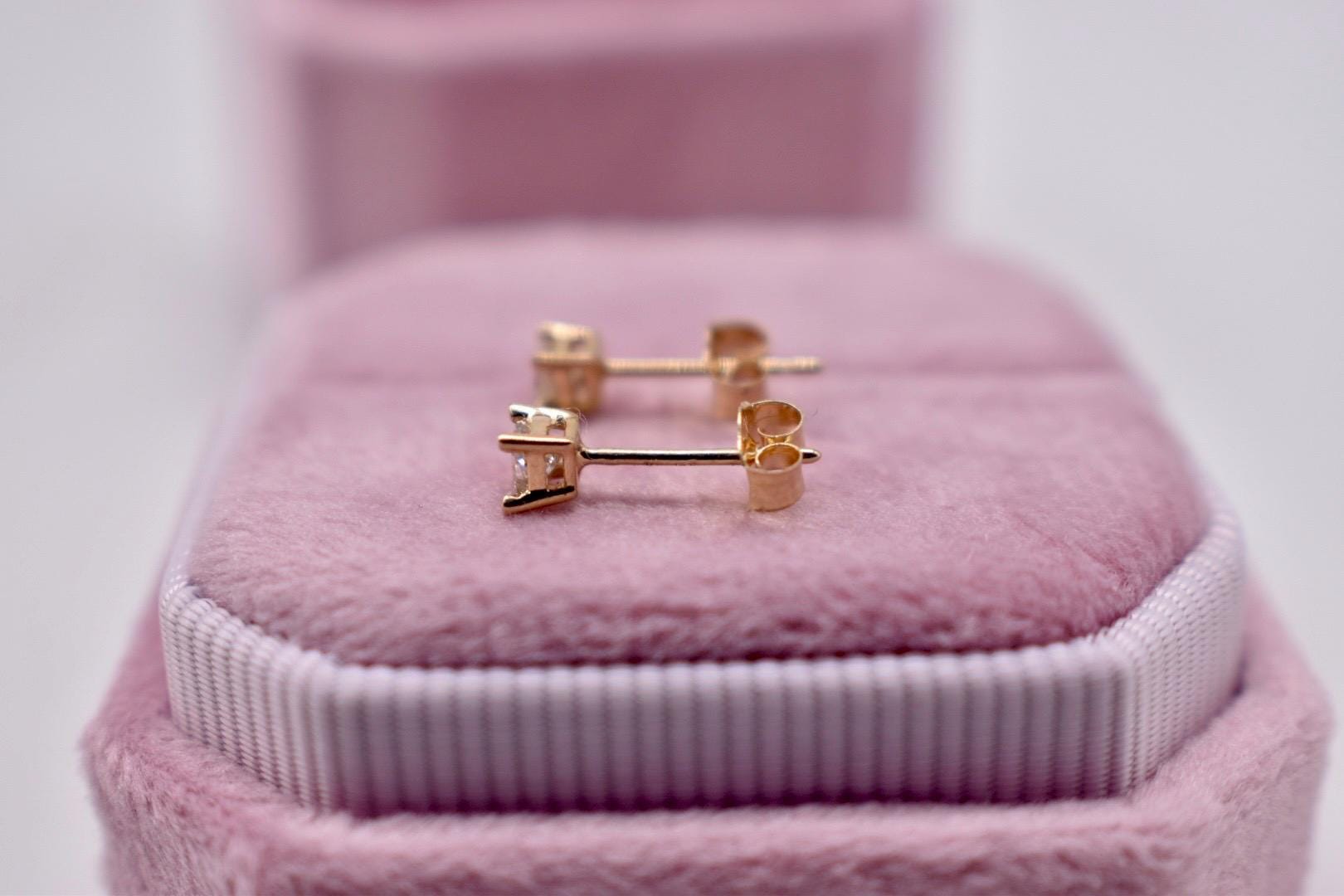 14K Yellow Gold Princess Cut Diamond Push Back Stud Earrings 0.20cts