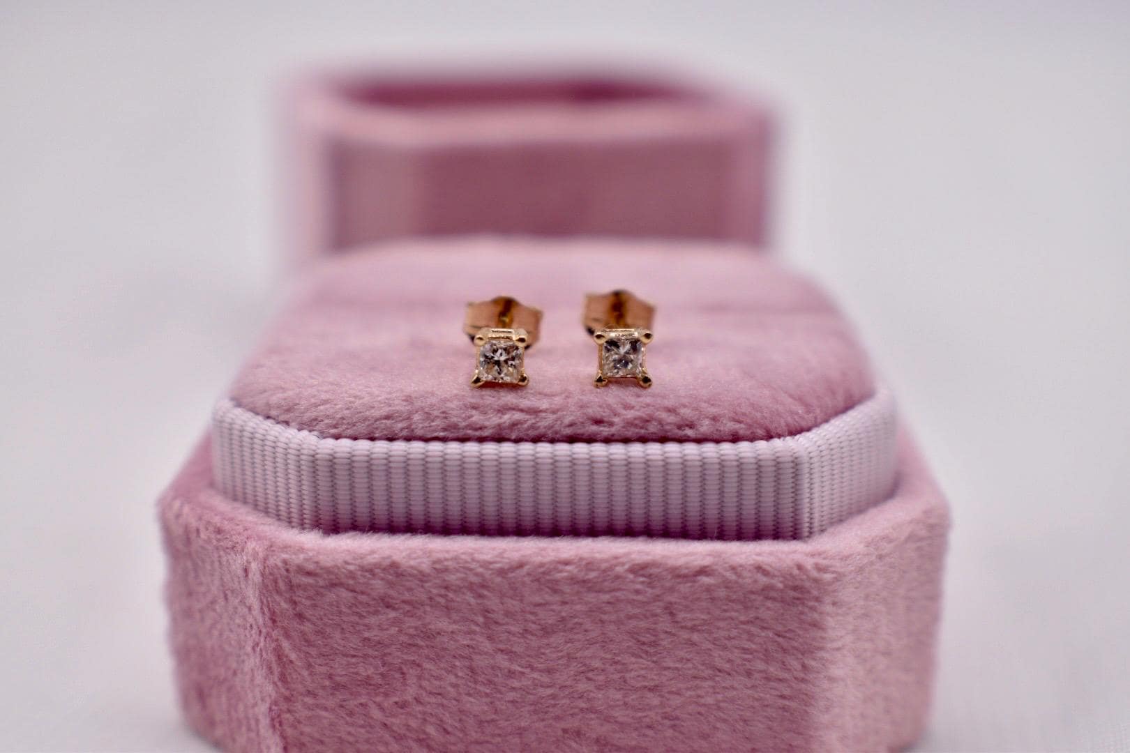 • Load image into Gallery viewer, 14K Yellow Gold Princess Cut Diamond Push Back Stud Earrings 0.20cts