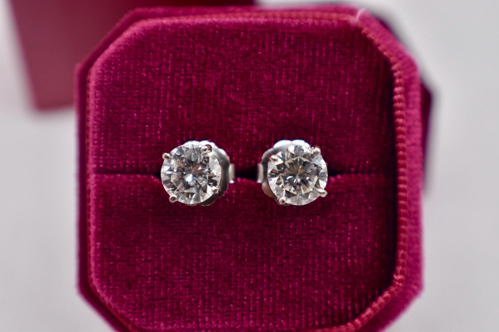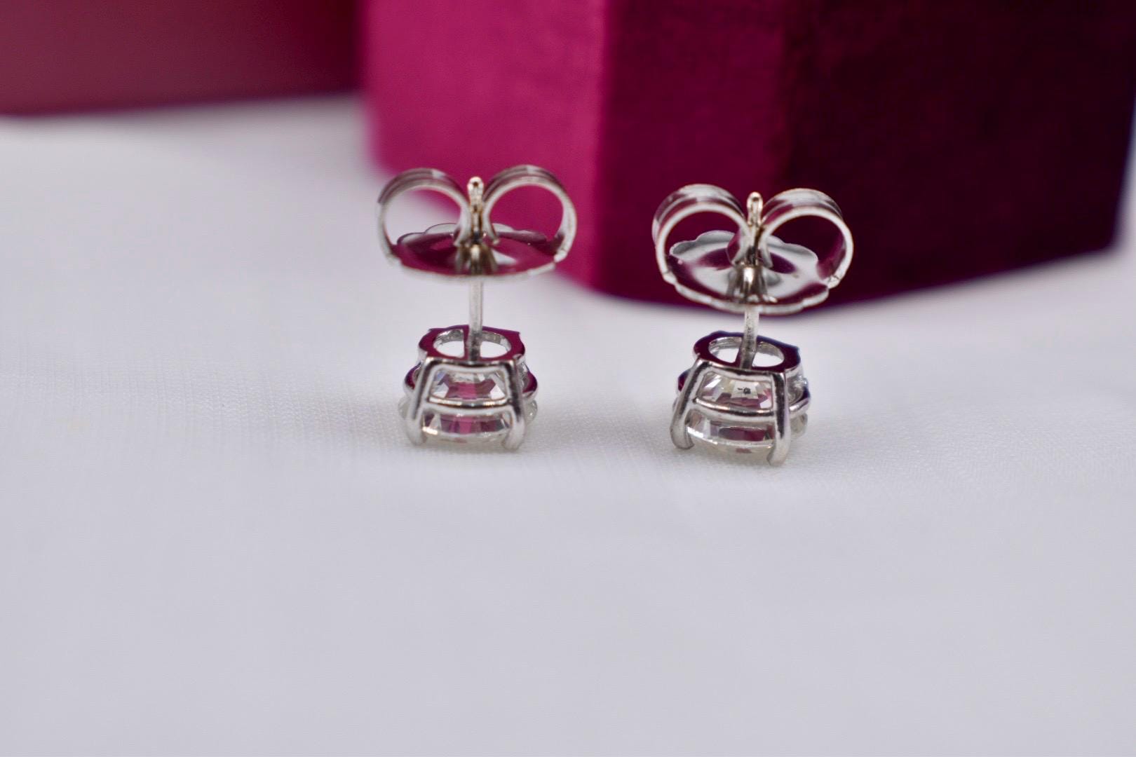 One pair of stunning statement 14 karat white gold natural earth mined brilliant modern round cut diamond push back earrings. The earrings are in like new condition with a perfect match of diamonds. The earrings are set with two round 100% natural brilliant modern cut diamonds weighing approximately 3.40cts total weight featuring a color of I and a clarity of I1. The brilliance of the diamonds make them look more like SI clarity stones. They feature a very good cut and polish. The diamonds are set in 14 karat white gold four prong style mountings with a very secure push back style post and backing. The earrings weigh 2.70 grams. The diamonds have been graded by a GIA graduate gemologist and all information is 100% accurate. Earrings will come with a written insurance appraisal. Appraisal value: $20,000.