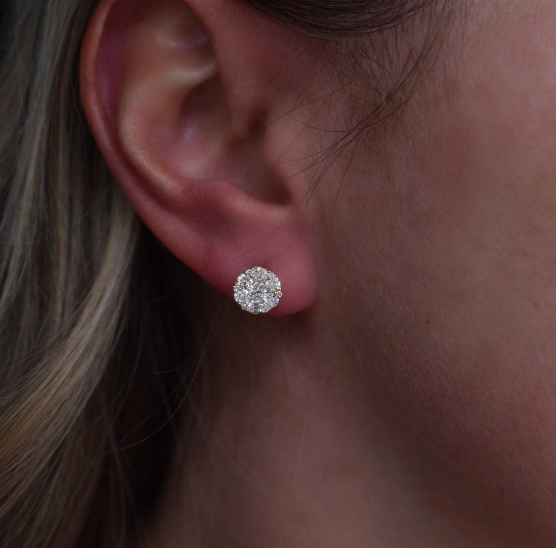 Vintage 14K Yellow Gold Diamond Halo Cluster 1.00cts Stud Earrings