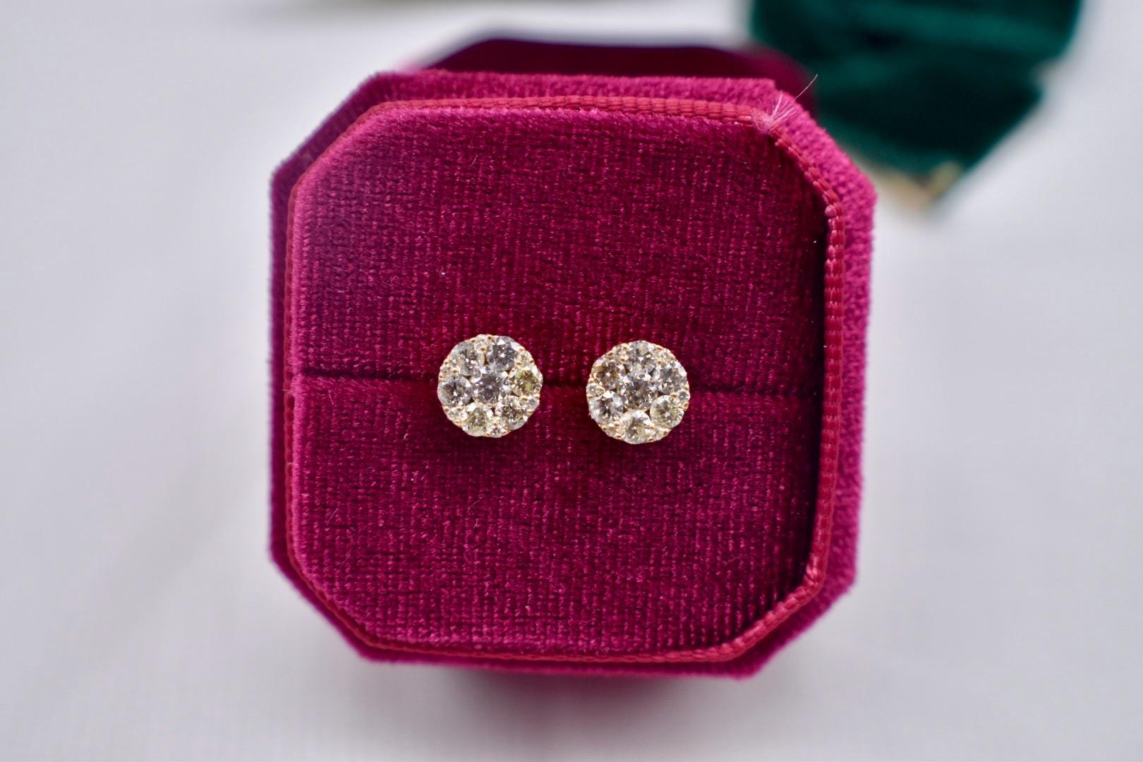 • Load image into Gallery viewer, Vintage 14K Yellow Gold Diamond Halo Cluster 1.00cts Stud Earrings