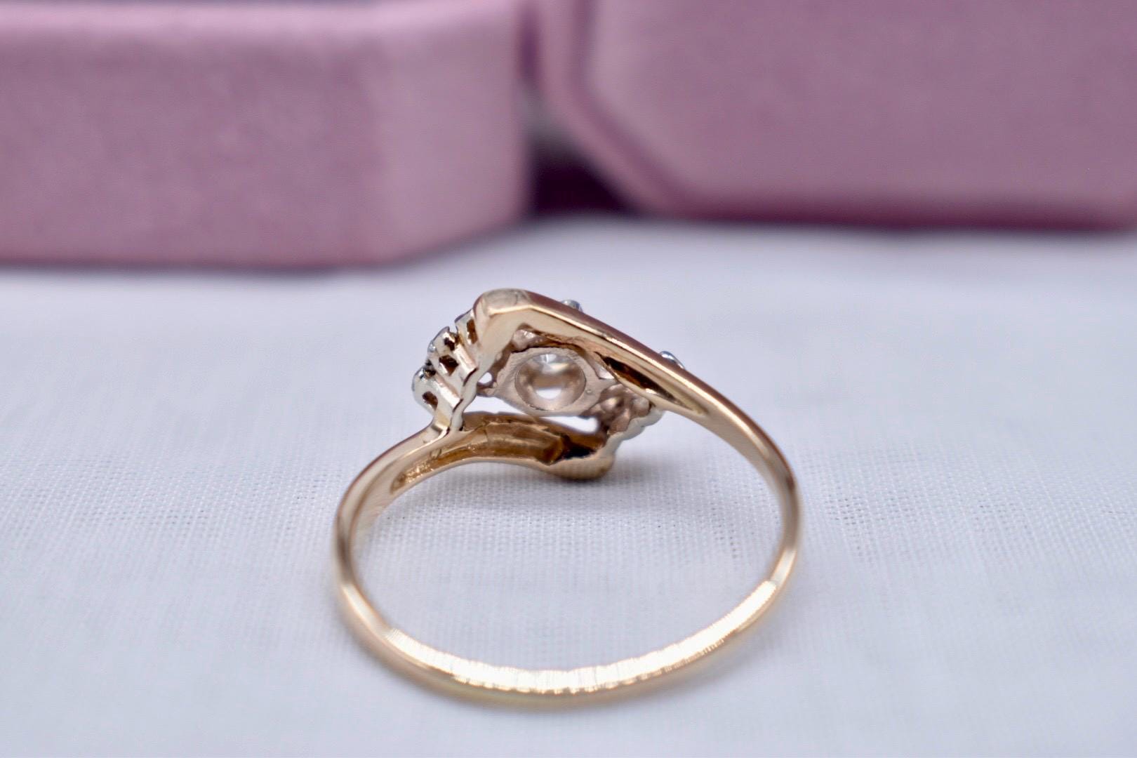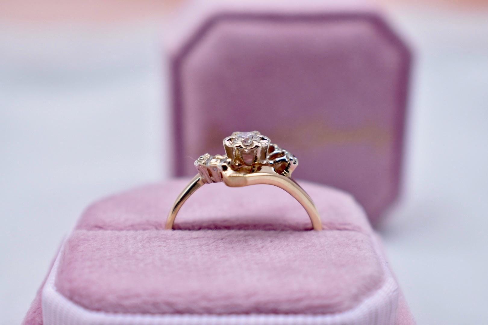 Vintage 14K Yellow Gold Retro Abstract Bypass Diamond Ring