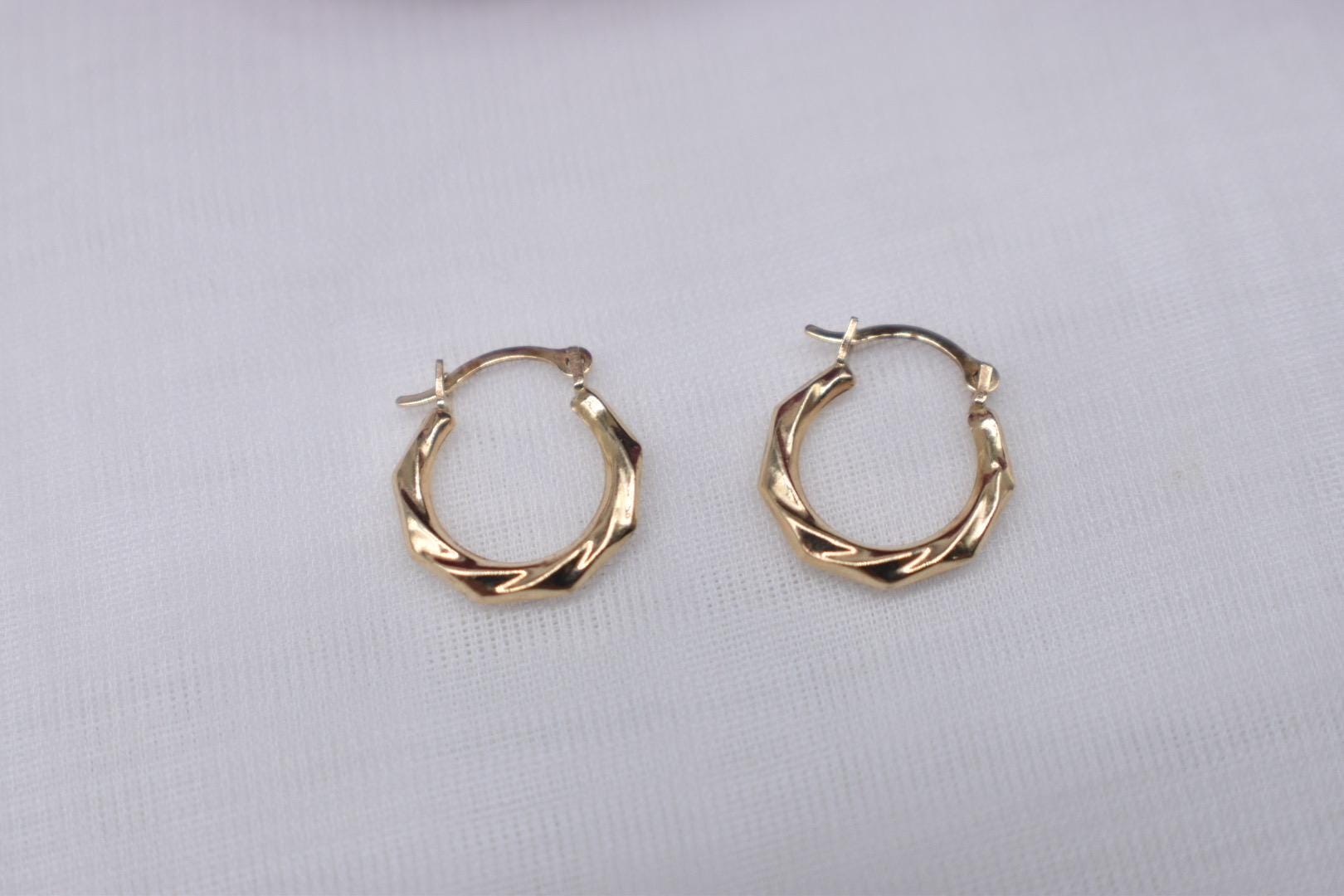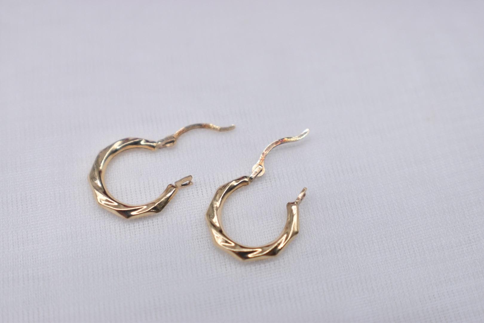One pair of 14K yellow gold Scalloped Hollow Hoop earrings. The earrings are in good condition with very light wear. They have a beautiful detailed scalloped design. The earrings weigh 0.3 grams and measure 12.90mm in length and 11.80mm in width. Appraisal Value: $200. These earrings will be shipped in a vintage suede hand made box. This information is all 100% accurate and being sold by a GIA graduate gemologist.