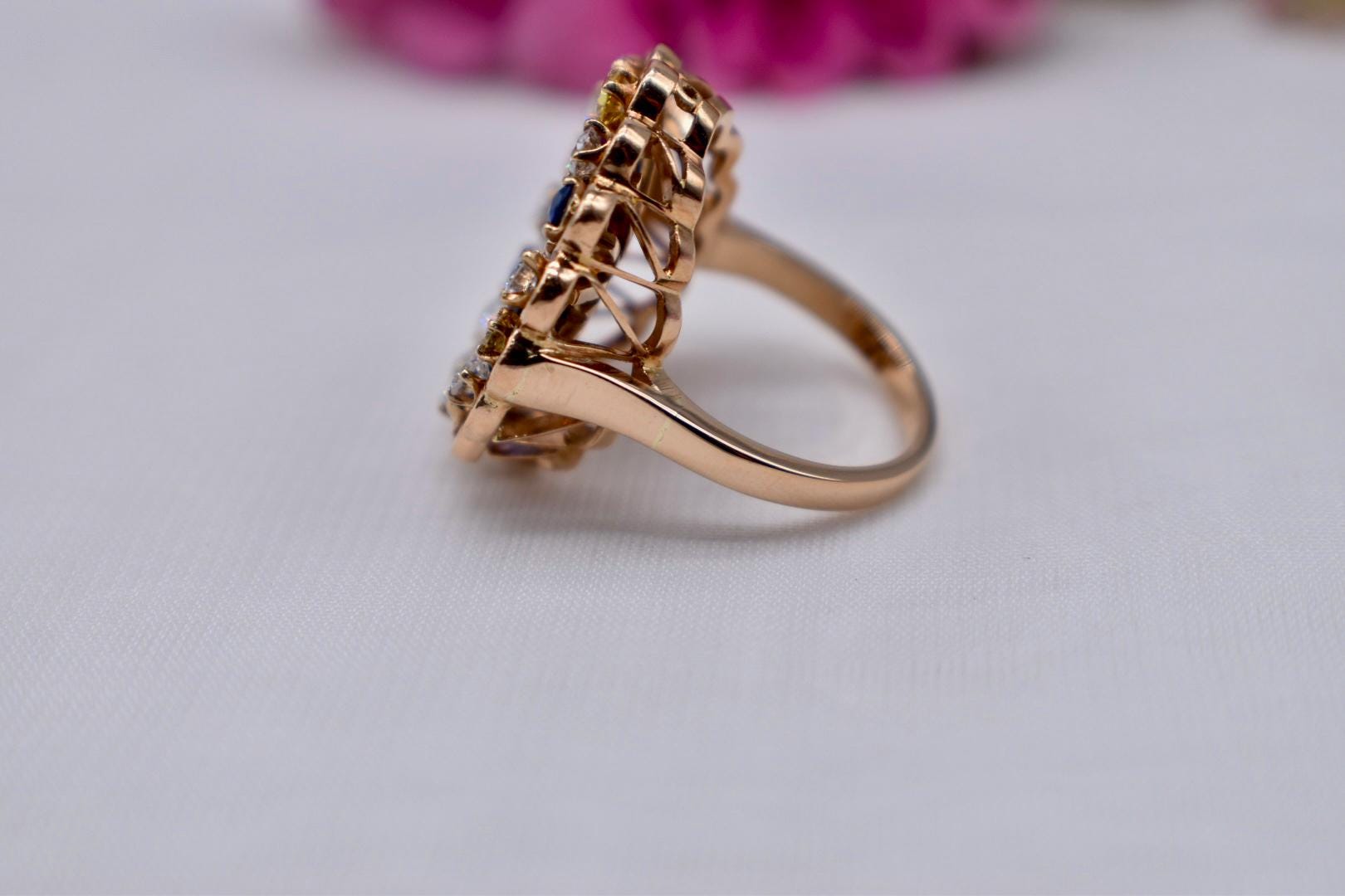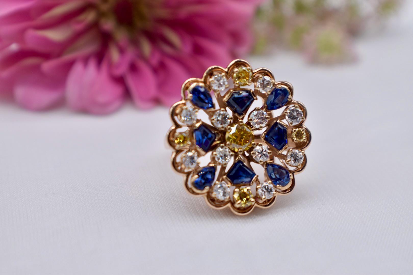 Vintage 14K Yellow Gold Yellow Diamond & Sapphire 4.36cts Cocktail MidCentury Geometric Ring